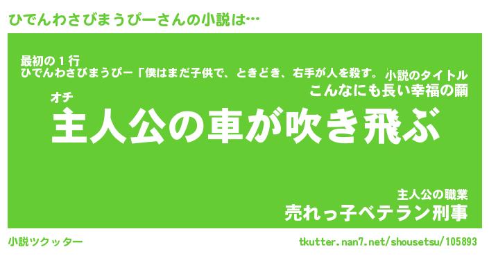 | 男性向けラノベタイトル風あだ名 | 『ひでんわさびまうぴーの憂鬱』 |