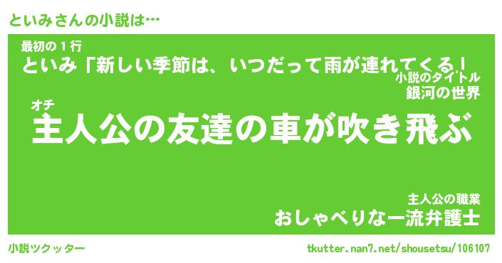 | 魚たちの銀の雨WW …「ケモノ」 | 10月27日 05:47 |