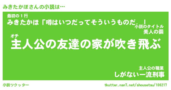 | 男性向けラノベタイトル風あだ名 | 『みきたかほの憂鬱』 |