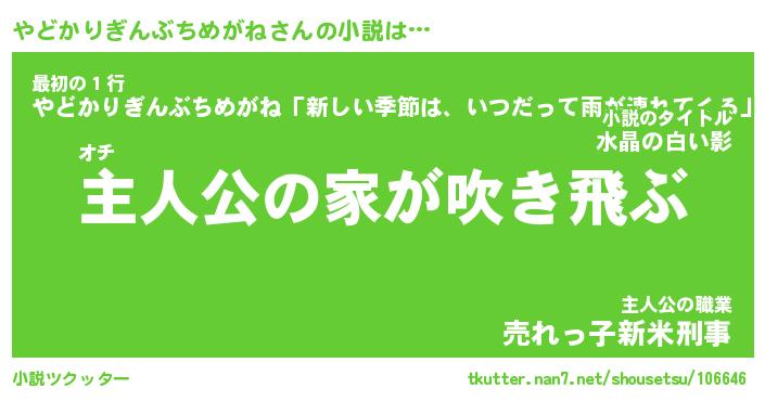 | 男性向けラノベタイトル風あだ名 | 『やどかりぎんぶちめがねの憂鬱』 |
