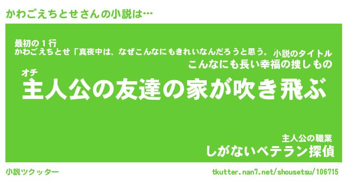 | 男性向けラノベタイトル風あだ名 | 『かわごえちとせの憂鬱』 |