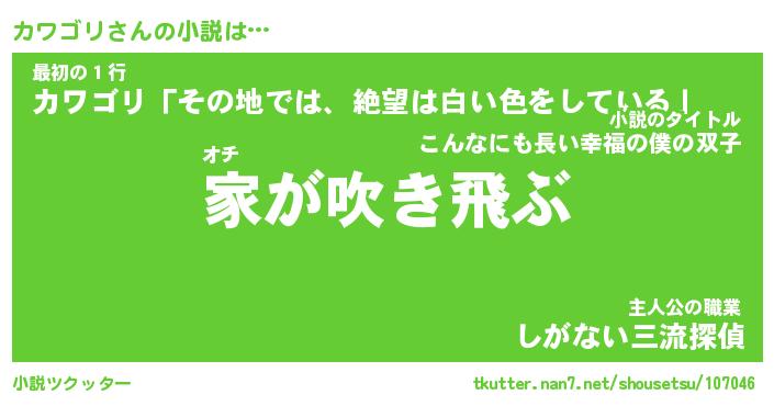 | 男性向けラノベタイトル風あだ名 | 『カワゴリの憂鬱』 |