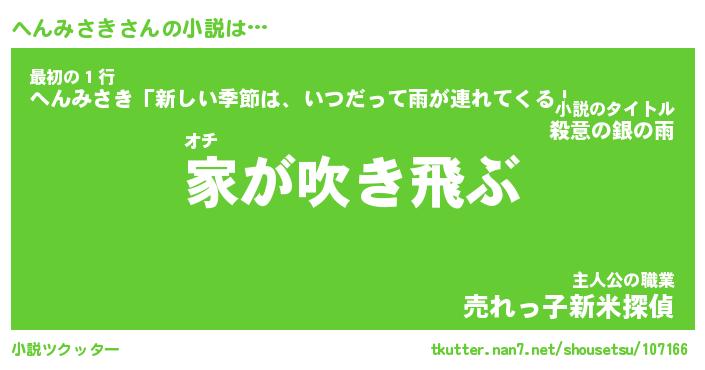 | 魚たちの銀の雨WW …「ケモノ」 | 10月27日 05:47 |