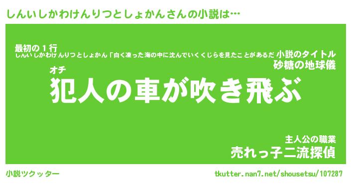 | ツイッター | しんいしかわけんりつとしょかんさんのツイッターID『fukuyoka_man』 |