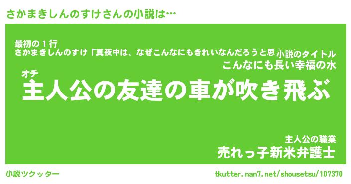 | 女子向けラノベタイトル風あだ名 | 『誰かこのさかまきしんのすけを説明してください! ~契約から始まるウェディング~』 |