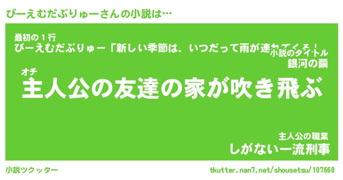 | 魚たちの銀の雨WW …「ケモノ」 | 10月27日 05:47 |