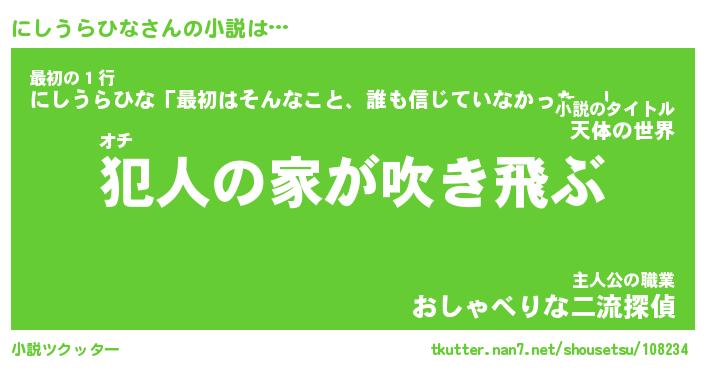 | 胡散臭い通販商品みたいなあだ名 | 『億万長者になれるブレスレット…その名も「にしうらひな」』 |