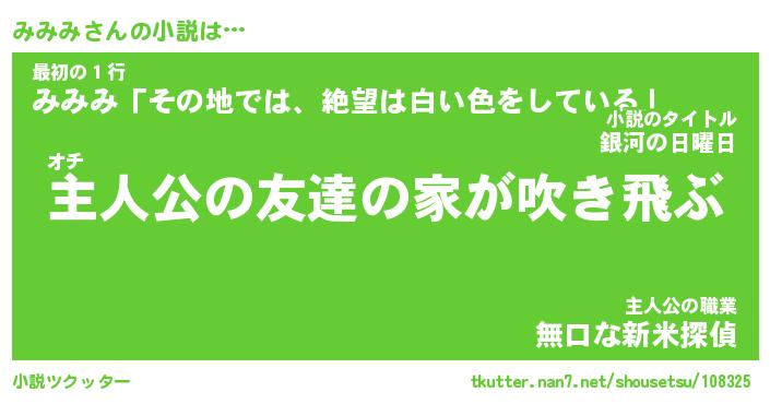 | 男性向けラノベタイトル風あだ名 | 『みみみの憂鬱』 |