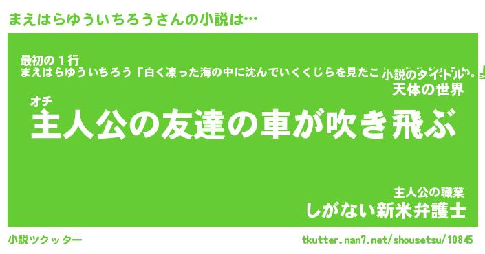 | 伝説のあだ名 | 『不死鳥のスナイパーまえはらゆういちろう』 |