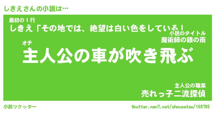 | 男性向けラノベタイトル風あだ名 | 『しきえの憂鬱』 |