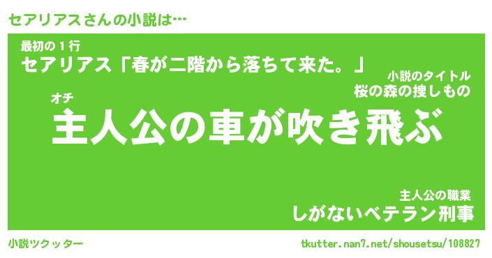 | 男性向けラノベタイトル風あだ名 | 『セアリアスの憂鬱』 |