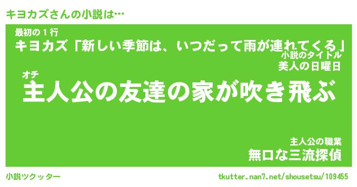 | 男性向けラノベタイトル風あだ名 | 『キヨカズの憂鬱』 |