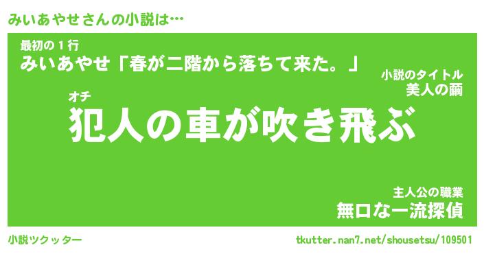 | 胡散臭い通販商品みたいなあだ名 | 『億万長者になれる霊験あらたかなお札…その名も「みいあやせ」』 |