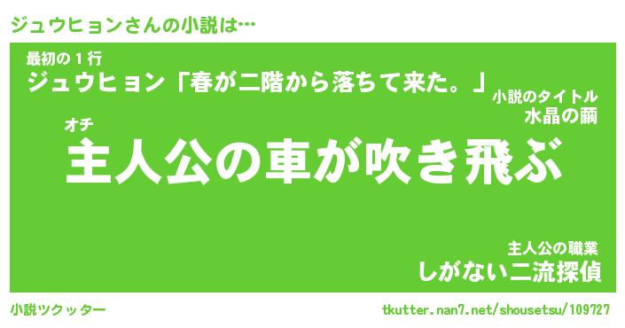 | 男性向けラノベタイトル風あだ名 | 『ジュウヒョンの憂鬱』 |