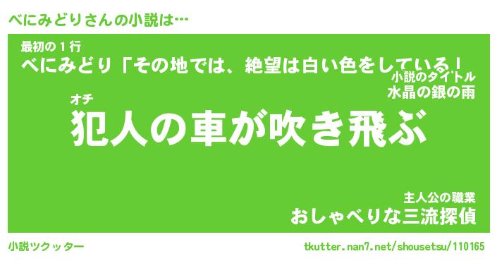 | 胡散臭い通販商品みたいなあだ名 | 『億万長者になれる霊験あらたかなお札…その名も「べにみどり」』 |