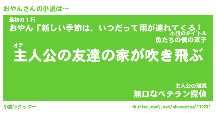 | 魚たちの銀の雨WW …「ケモノ」 | 10月27日 05:47 |