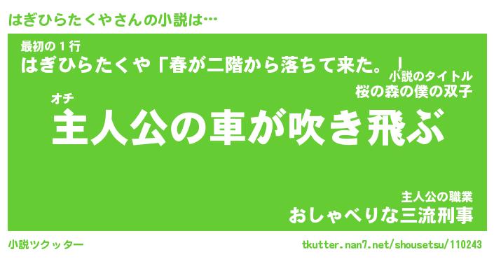 | 胡散臭い通販商品みたいなあだ名 | 『必ず成功するブレスレット…その名も「はぎひらたくや」』 |