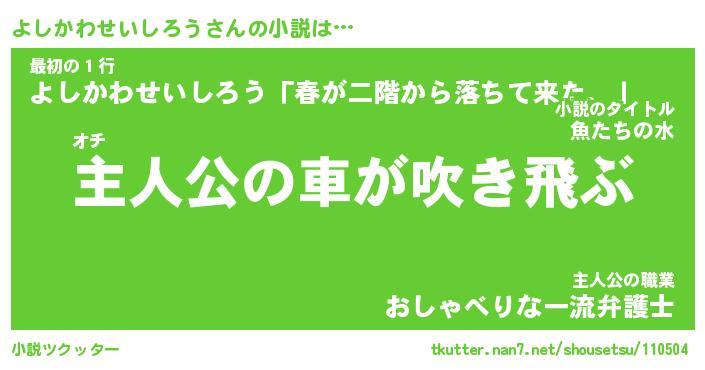 | 男性向けラノベタイトル風あだ名 | 『よしかわせいしろうの憂鬱』 |