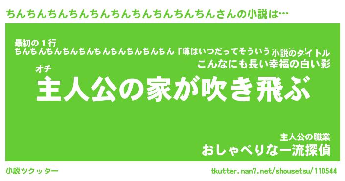 | 男性向けラノベタイトル風あだ名 | 『ちんちんちんちんちんちんちんちんちんちんの憂鬱』 |