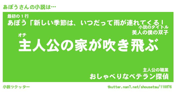 | 女子向けラノベタイトル風あだ名 | 『(仮)あぽうのやんごとなき事情』 |