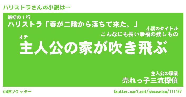 | 男性向けラノベタイトル風あだ名 | 『ハリストラの憂鬱』 |