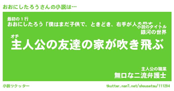 | 男性向けラノベタイトル風あだ名 | 『おおにしたろうの憂鬱』 |