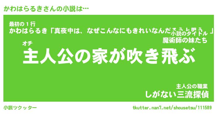 | 男性向けラノベタイトル風あだ名 | 『かわはらるきの憂鬱』 |