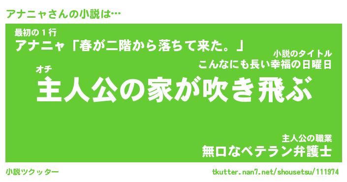 | 男性向けラノベタイトル風あだ名 | 『アナニャの憂鬱』 |