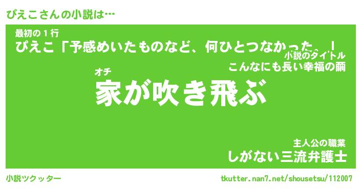 | 男性向けラノベタイトル風あだ名 | 『ぴえこの憂鬱』 |