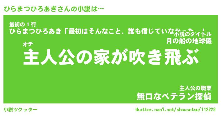 | 男性向けラノベタイトル風あだ名 | 『ひらまつひろあきの憂鬱』 |