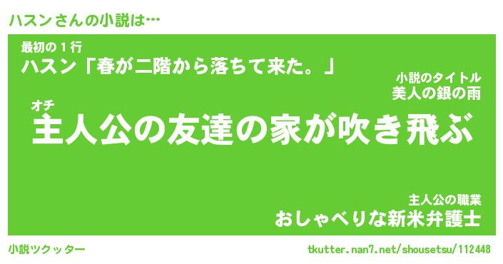 | 胡散臭い通販商品みたいなあだ名 | 『モテモテ間違いなしブレスレット…その名も「ハスン」』 |