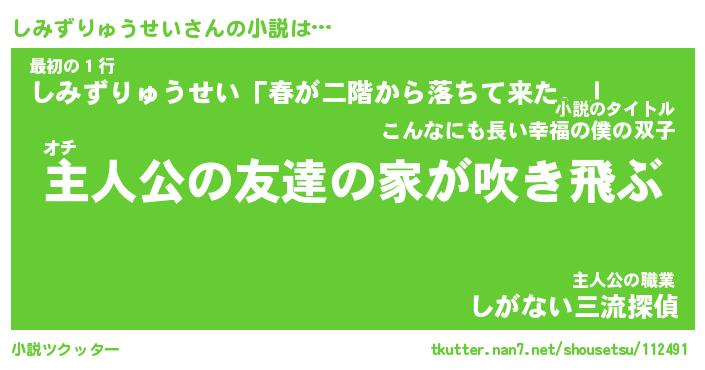 | 男性向けラノベタイトル風あだ名 | 『しみずりゅうせいの憂鬱』 |