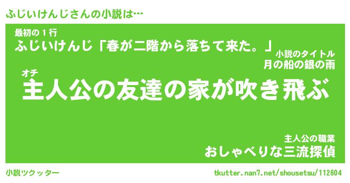 | 男性向けラノベタイトル風あだ名 | 『ふじいけんじの憂鬱』 |