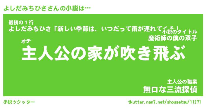 | 男性向けラノベタイトル風あだ名 | 『よしだみちひさの憂鬱』 |