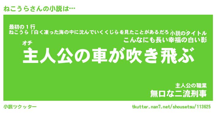 | 男性向けラノベタイトル風あだ名 | 『ねこうらの憂鬱』 |