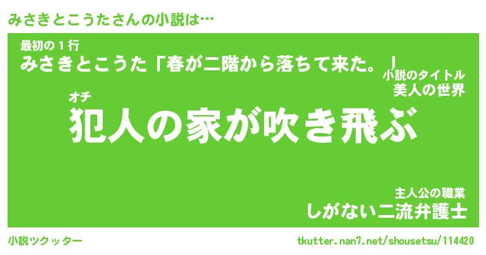 | 男性向けラノベタイトル風あだ名 | 『ミサキトコウタアートオンライン』 |