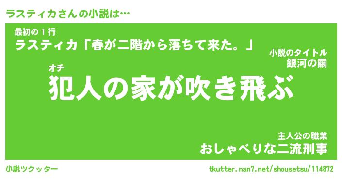 | 胡散臭い通販商品みたいなあだ名 | 『億万長者になれるブレスレット…その名も「ラスティカ」』 |