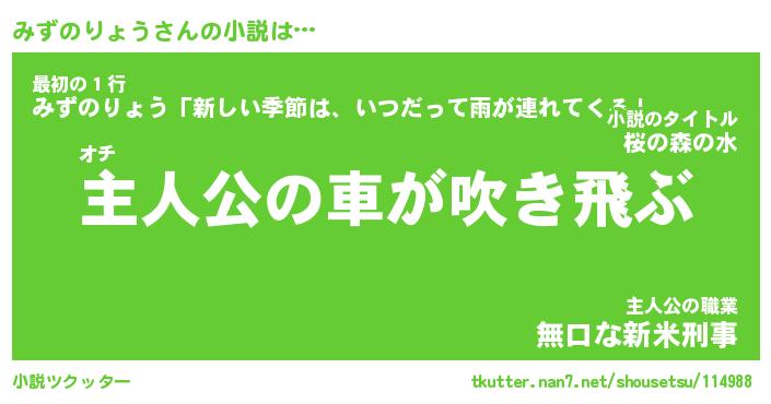 | 男性向けラノベタイトル風あだ名 | 『みずのりょうの憂鬱』 |