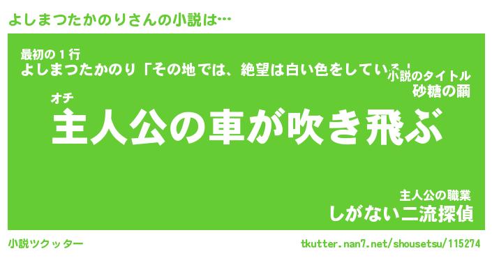 | 男性向けラノベタイトル風あだ名 | 『よしまつたかのりの憂鬱』 |