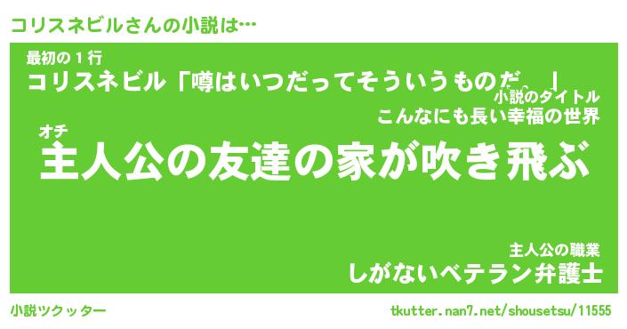 | 男性向けラノベタイトル風あだ名 | 『コリスネビルアートオンライン』 |