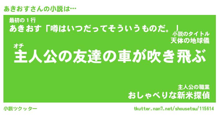 | 肩書あだ名 | 『あきおす御曹司』『あきおす国家主席』 |