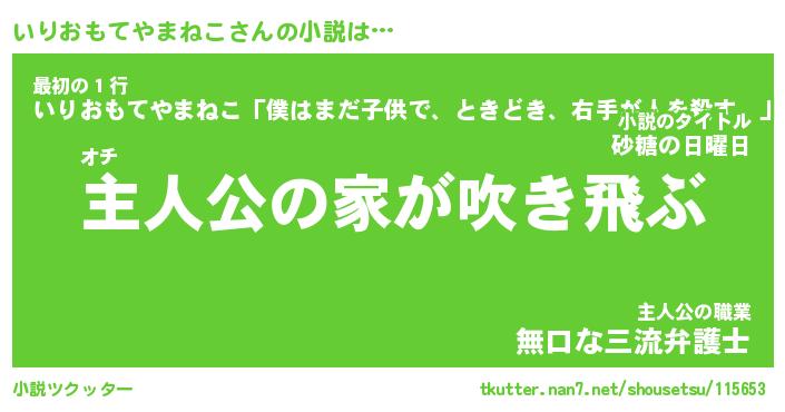 | 男性向けラノベタイトル風あだ名 | 『いりおもてやまねこの憂鬱』 |