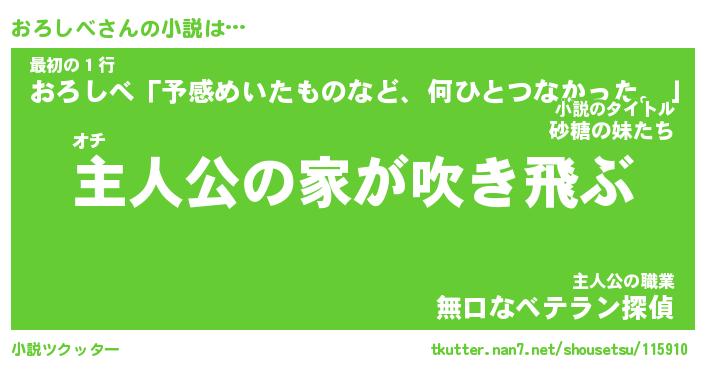 | 男性向けラノベタイトル風あだ名 | 『おろしべの憂鬱』 |