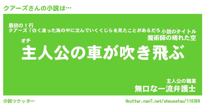 | 男性向けラノベタイトル風あだ名 | 『クアーズの憂鬱』 |