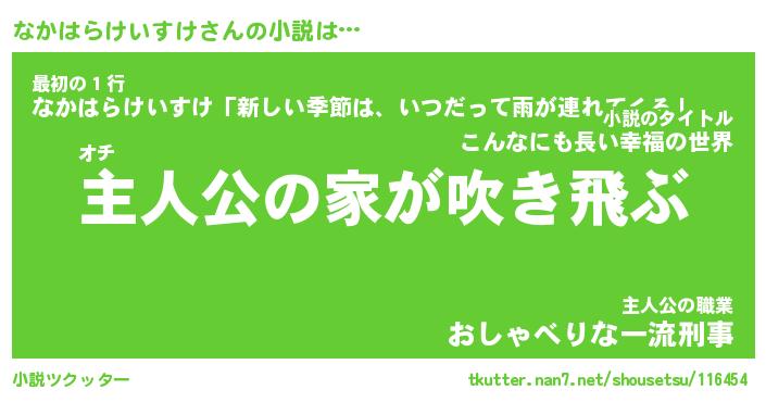 | 男性向けラノベタイトル風あだ名 | 『なかはらけいすけの憂鬱』 |