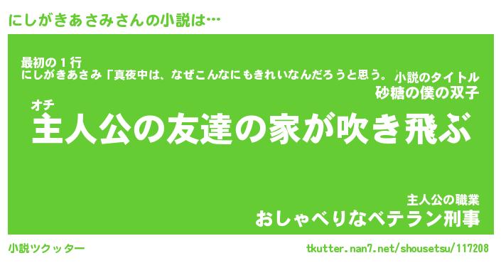 | 男性向けラノベタイトル風あだ名 | 『にしがきあさみの憂鬱』 |