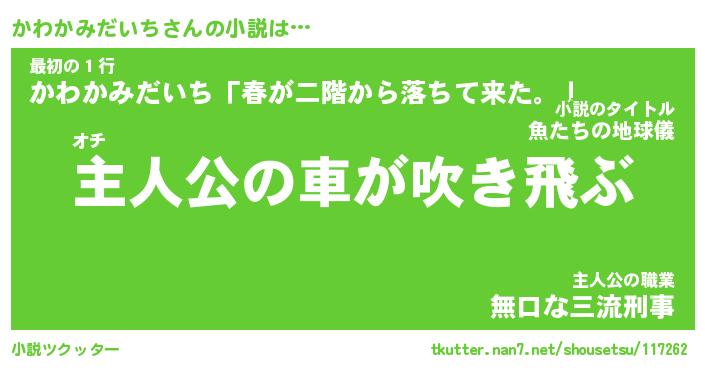 | 胡散臭い通販商品みたいなあだ名 | 『必ず成功する水晶球…その名も「かわかみだいち」』 |