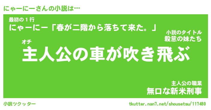 | 男性向けラノベタイトル風あだ名 | 『にゃーにーの憂鬱』 |