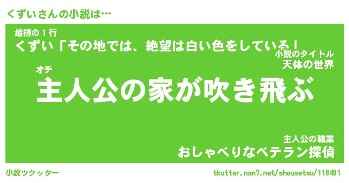 | 男性向けラノベタイトル風あだ名 | 『くずいの憂鬱』 |