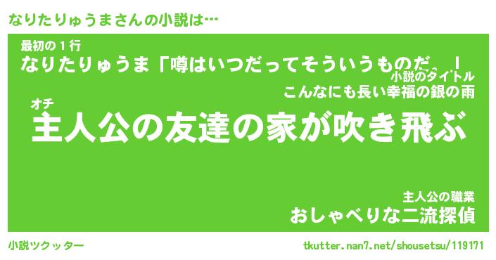| 男性向けラノベタイトル風あだ名 | 『なりたりゅうまの憂鬱』 |